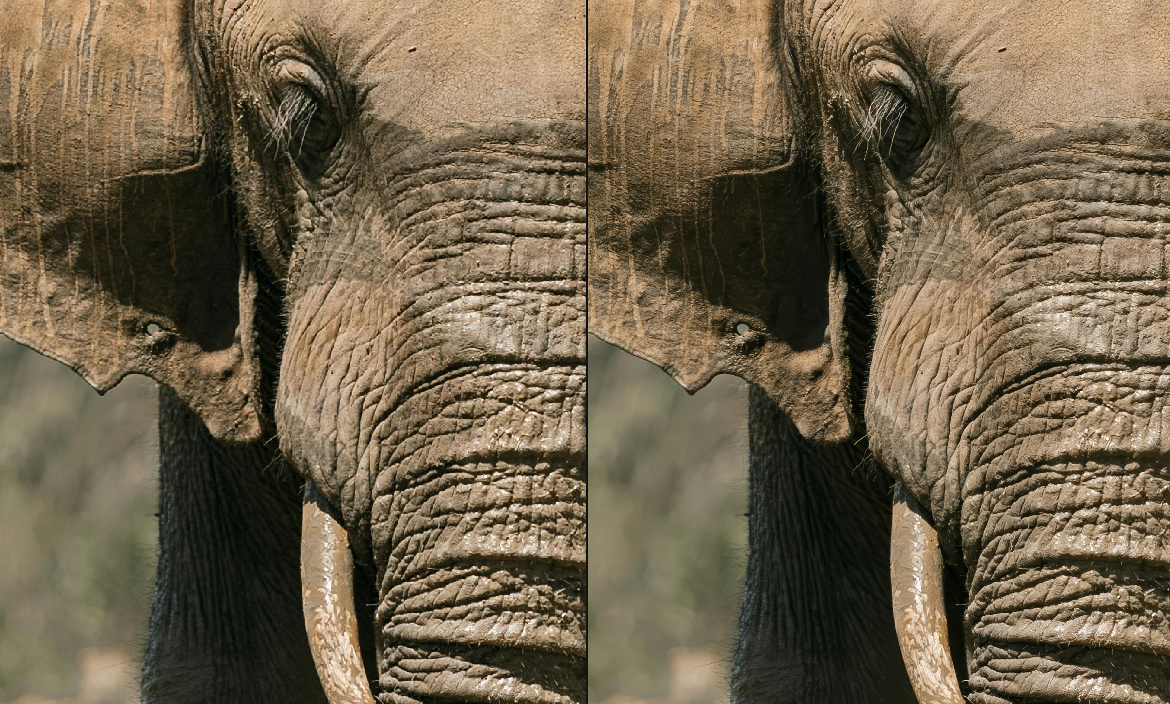 Preserve the textures and authentic capture capture details with High Fidelity and minimally change details using the Denoise slider.