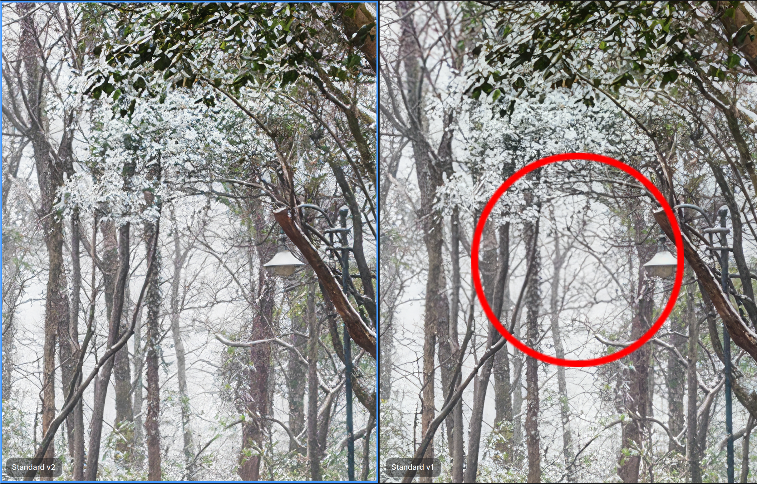 Standard v2 reduces blurry patches that occurred in Standard v1.