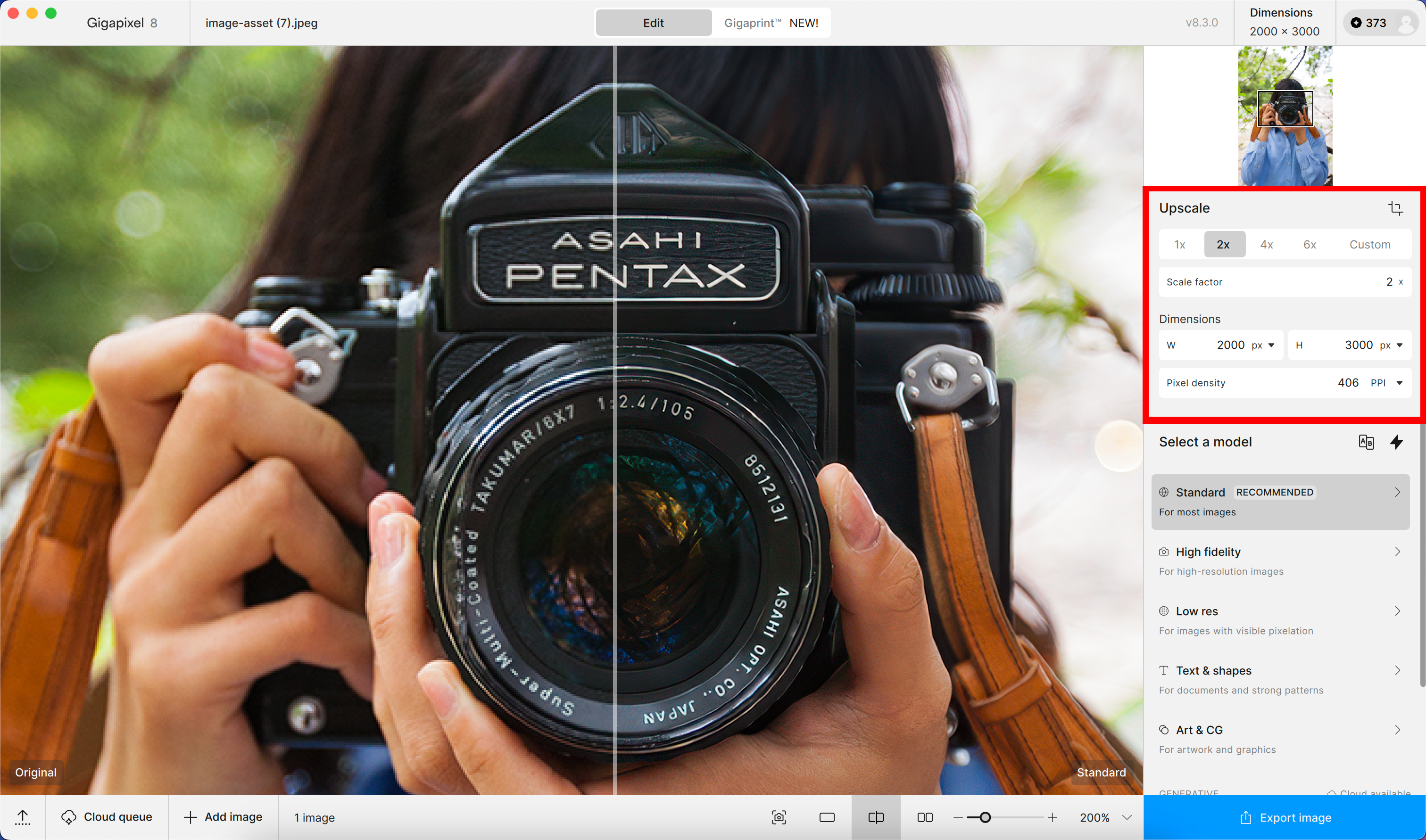 Use the 1x scale to enhance your image without upscaling.