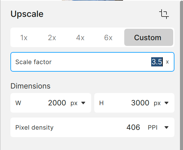 - DIMENSIONS will upscale your image by using a custom width or height