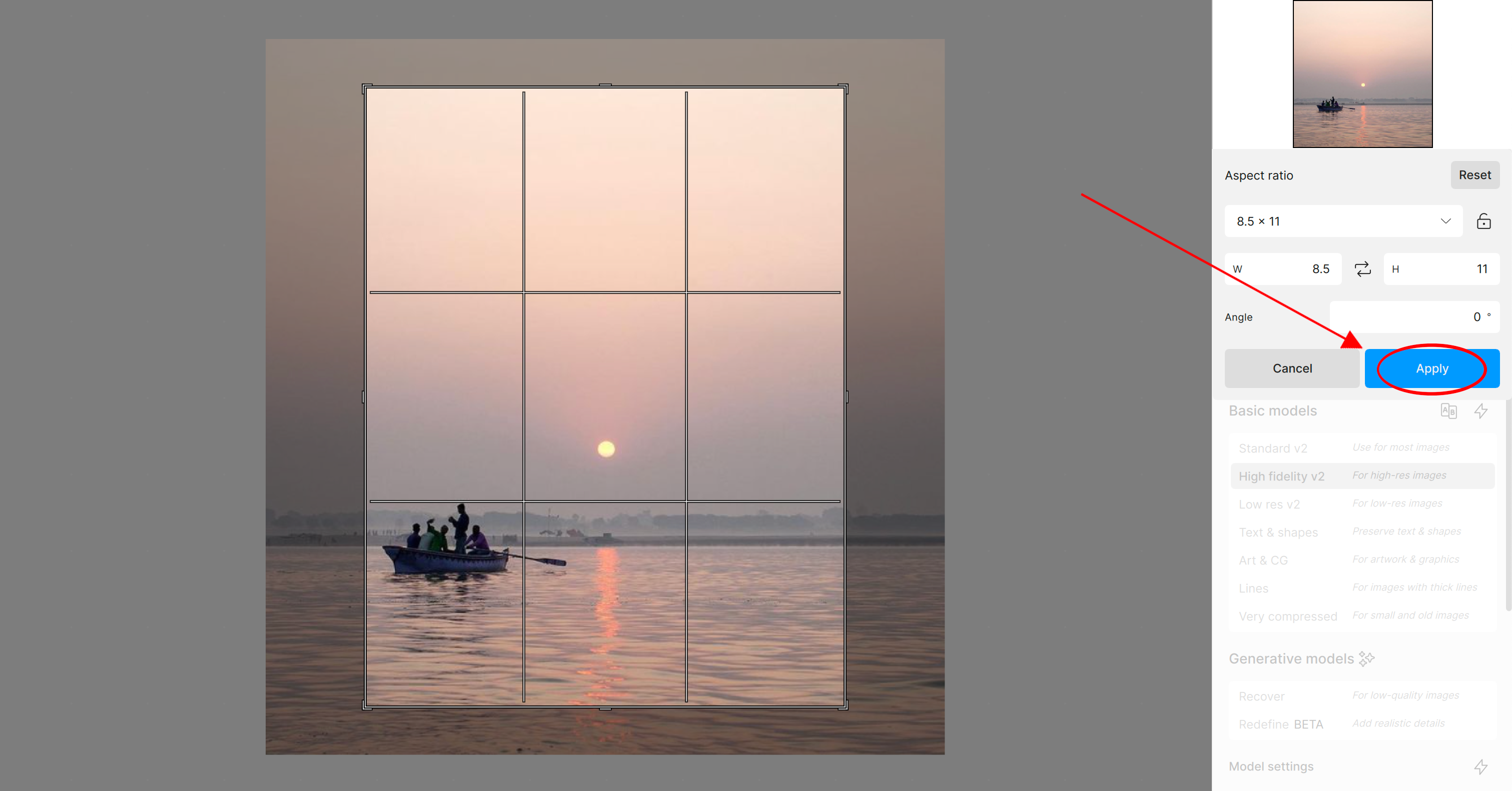 Once you have decided on your crop, click "Apply".