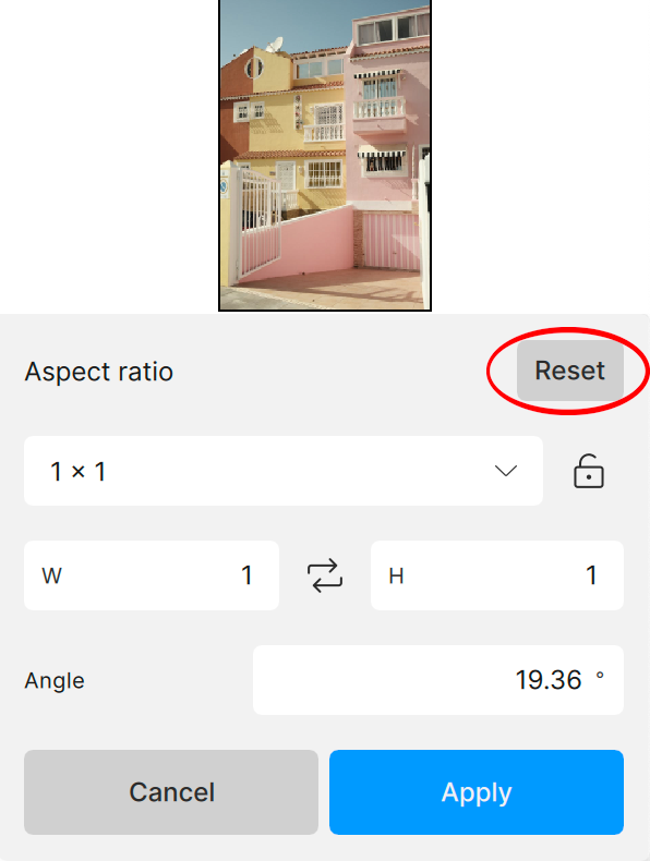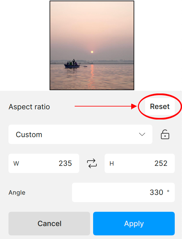 To undo your custom crop, click on the "Reset" button to return the crop to its original ratio.