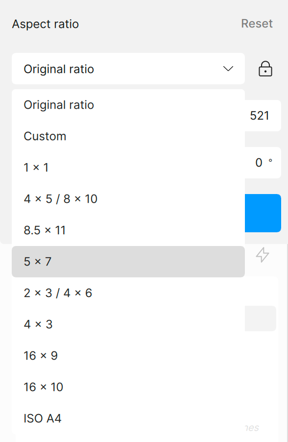 Select from different aspect ratios provided in the dropdown menu or set your own custom crop.