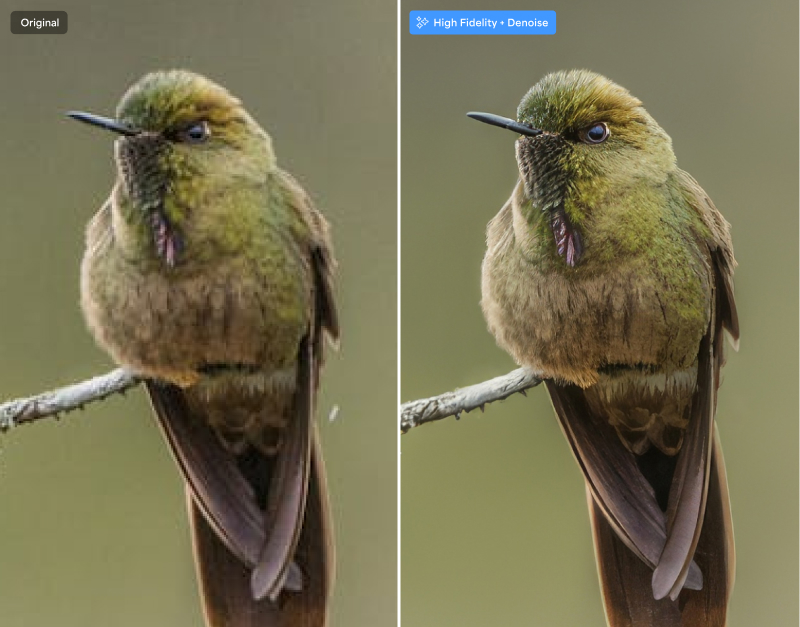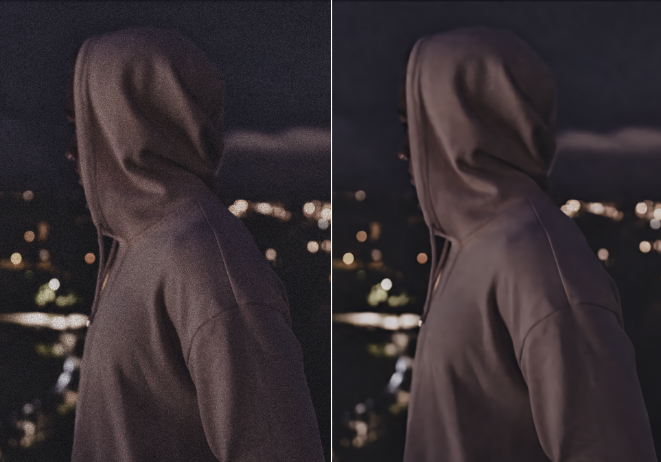 The Denoise enhancement eliminates distracting noise caused by low-light conditions or file compression while recovering crisp details. It also handles slight chromatic aberration.
