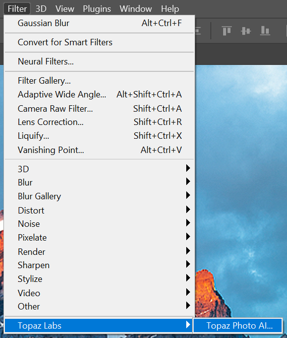 Filter > Topaz Labs > Topaz Photo AI