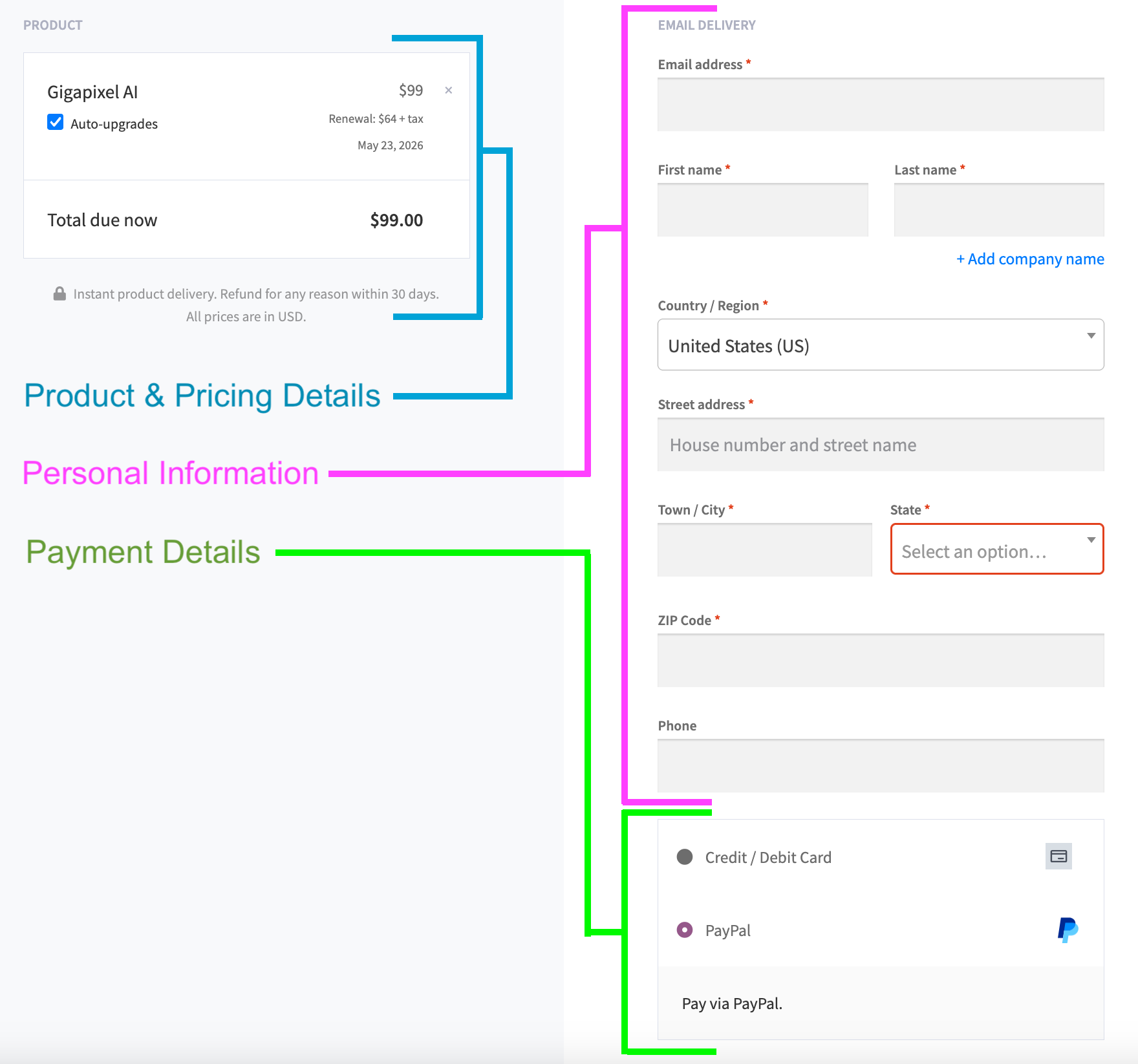 If you are already logged in, you should see your email filled in. If not, enter the email you want to use for the account. New order details will also be sent here, including instructions on how to set your password if you haven’t created an account yet.