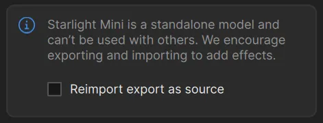 - Assuming that you’ve already installed Starlight Mini, when this model is selected, you will be presented with the following notification: