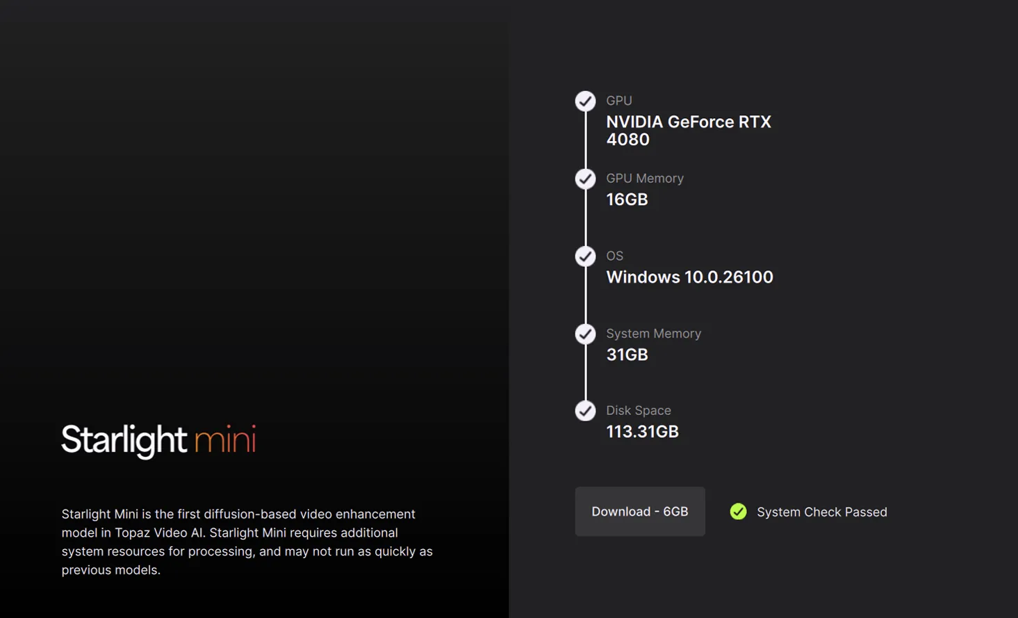 - In addition to these GPU requirements, Starlight mini also requires a minimum of 12GB of system RAM.