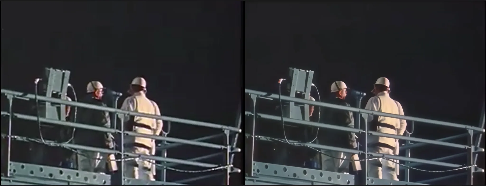 Still frames of the original video clip 316x240 (left) and the Starlight Mini output 1280x972 (right).