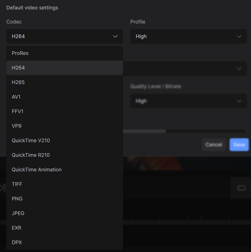Select the default video encoder to use when exporting files. Choose between video exports or an image sequence output.