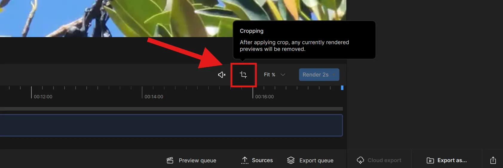 To crop, locate the crop button on the upper right-hand side of the Timeline.